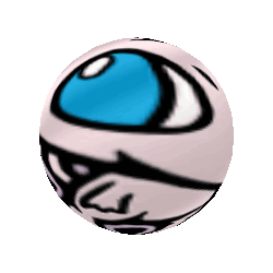 An animated sticker featuring a spinning orb with the iconic blue eye and black stripes of Pokémon's Mew.