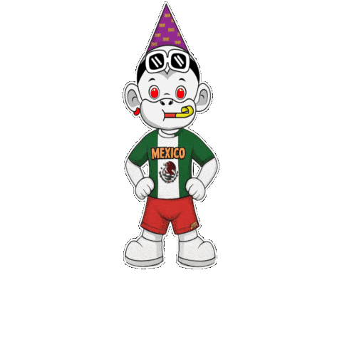 a cartoon of a monkey wearing a mexico shirt and a party hat
