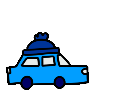 Two cartoon blue cars, one with a hat, with hearts floating above, symbolizing love and affection.