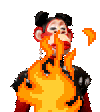 A pixel art character from the Meta Gold Digger Club (MGDC) NFT collection, depicted engulfed in vibrant pixelated flames.