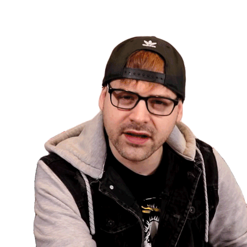 Jared Dines, wearing glasses and a hat, ponders with a thoughtful expression, saying 'Mhm Let Me Think About It'.