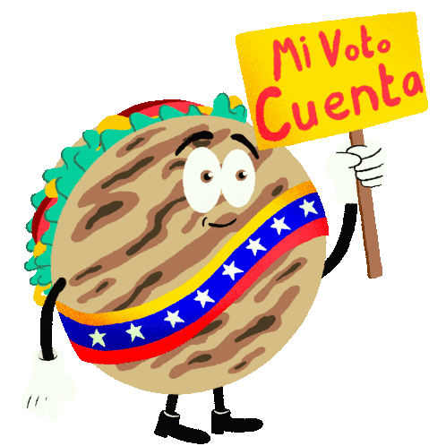 An animated cartoon character, resembling a taco or planet, holds a sign saying 'Mi Voto Cuenta' ('My Vote Counts').