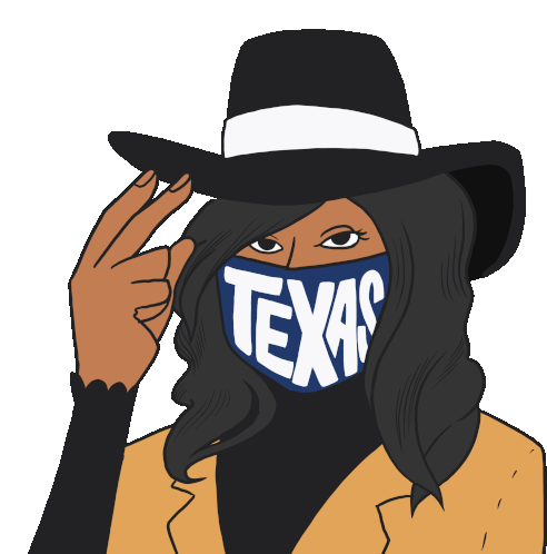 A person in a cowboy hat and 'TEXAS' mask, tipping their hat, with 'Mi Voto Cuenta' (My Vote Counts) on the brim, promoting voting.