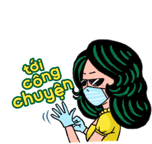 Miaha Mía Ha, wearing a mask and gloves, is ready to get down to business, signaling 'tới công chuyện'.