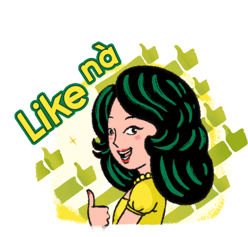 Miaha Mía Ha, a cheerful cartoon character, gives a thumbs up with 'LIKE NA' text, expressing positivity.