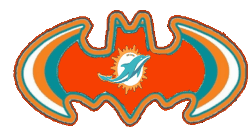 A unique animated sticker featuring the Miami Dolphins logo dynamically integrated within the iconic Batman logo, with the dolphin briefly spinning.