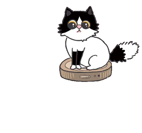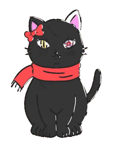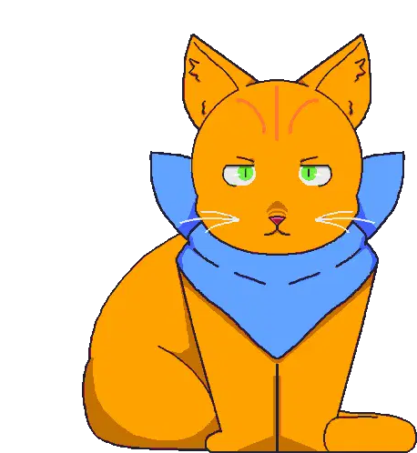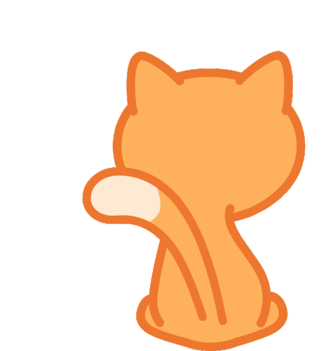A curious orange cartoon cat turns its head to look over its shoulder, with its tail wagging slightly.