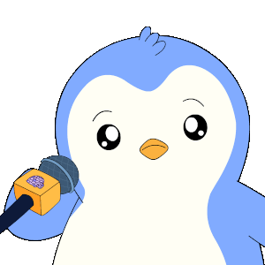 Pudgy Penguin, a blue and white cartoon character, performs a classic mic drop with a CNN-branded microphone.