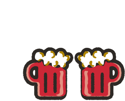 Two red mugs with frothy foam clinking together in a celebratory cheers, perfect for a toast.
