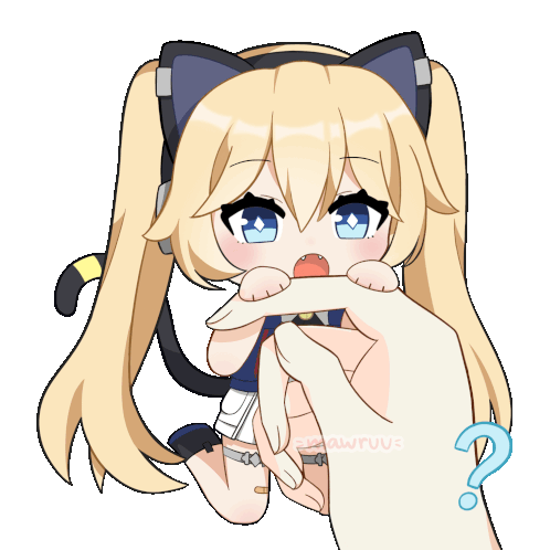 Michele Strinova, a cute chibi anime girl with cat ears and pigtails, playfully bites a finger held by a large hand.