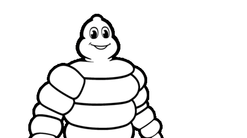 The iconic Michelin Man smiles and gives two enthusiastic thumbs up, conveying approval and positivity.