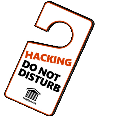 Animated door hanger for Microsoft Hackathon, featuring 'Hacking Do Not Disturb' message and The Garage logo.