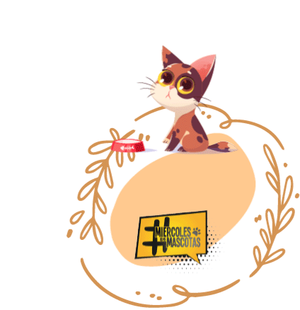 Animated sticker featuring a cute cat, the word 'Cuida' (Care), and 'Miércoles Mascotas' (Wednesday Pets) for pet adoption initiatives.