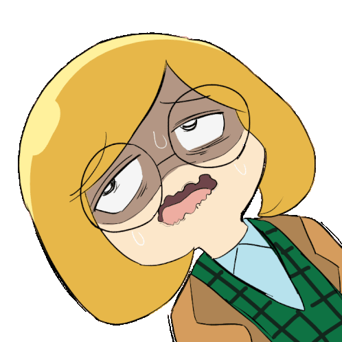 A Mii Miitomo character with glasses and a green vest shows an anxious, disgusted, and distressed expression.