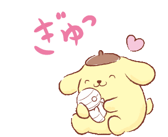 Pompompurin lovingly hugs Miikun from How To Keep A Mummy, showing affection with a heart.