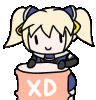 Mika Unist, a pink-haired cartoon girl, sits on an 'XD' barrel, humorously hitting a drum with drumsticks.