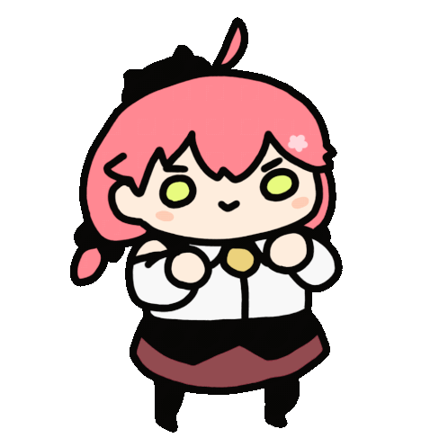 Miko, a cute pink-haired character, shows an angry expression while making rapid punching motions.