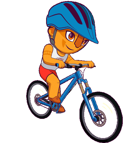 Milco, the Lima 2019 mascot, energetically rides his blue mountain bike, sporting a helmet and cycling gear.