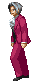 Miles Edgeworth, the prosecutor from Ace Attorney, walks in a pixel art animation, dressed in his red suit.