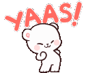 A cute Milk And Mocha bear covers its mouth in excitement as the text 'YAAS!' appears above its head.
