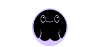 A cute black blob character happily drinks boba milk tea, eyes sparkling with joy and a wide smile.