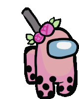 An adorable orange Among Us character sticker, styled as a boba tea with tapioca pearls and floral accents.