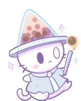 Adorable pixel art boba cat wizard with a milk tea hat and sparkling wand, subtly animated.