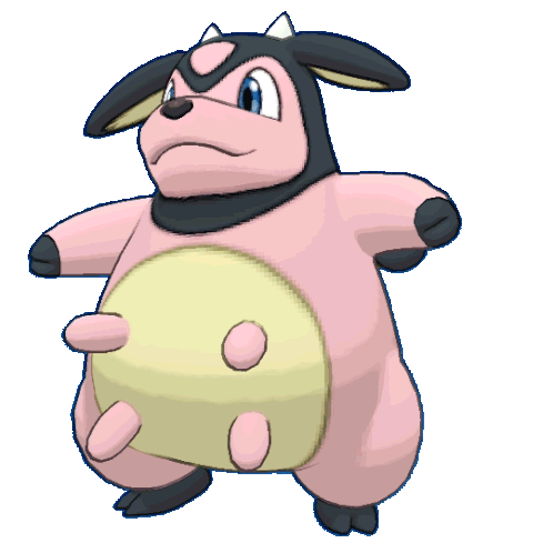 a cartoon drawing of a pink and black cow