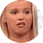 A woman's face in a circular frame makes various funny and confused expressions, mimicking different reactions.