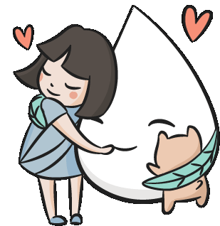 A cute animated sticker featuring Mimochai, a girl, and a hamstarcat sharing a warm group hug with hearts.