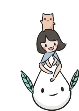 A cute Mimochai sticker featuring a large, light-colored dog walking a smaller, brown dog on a pink leash.