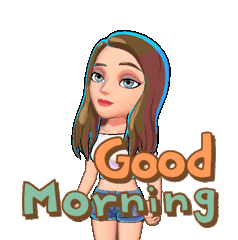 Mimosa wakes up, stretching and yawning, ready to greet the new day with a cheerful 'Good Morning' message.