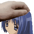 Minase Nayuki from Kanon, depicted in charming pixel art, features blue hair and a distinctive hat in this animated sticker.