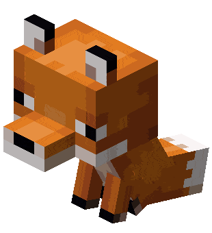An adorable blocky Minecraft fox, rendered in its iconic pixelated style, sitting and looking forward.