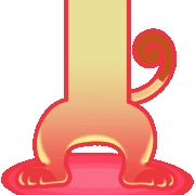 An animated sticker of a stretched-out Gigantamax Meowth, extending its long body with a funny expression.