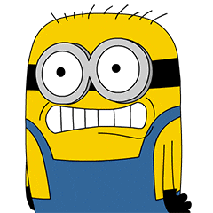 A yellow Minion-like character transitions from a wide-mouthed scream to a closed-mouth, confused expression with wide eyes.