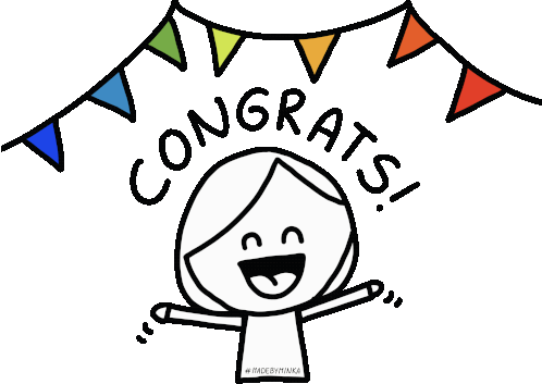 Minka by Madebyminka celebrates, blowing out a candle on a cake, with confetti and 'CONGRATS!' appearing.