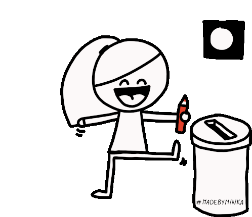 Minka's stick figure character, Madebyminka, happily votes with a red crayon, symbolizing participation in elections.