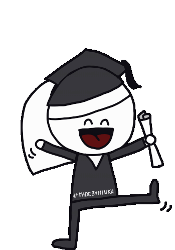 Minka Madebyminka sticker celebrating graduation day. Features a cap and diploma, conveying the joy of academic achievement and success. Ideal for congratulations.