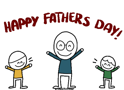 A heartwarming animated sticker by Minka showing a stick figure dad hugging his two children for Happy Fathers Day.