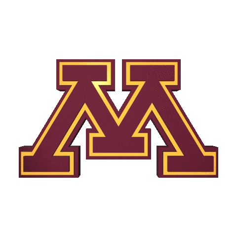 Animated 3D logo of the University of Minnesota Gophers, featuring the iconic maroon and gold 'M' rotating.