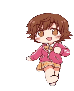 Mio Honda animated sticker cheerfully walking forward with a bright smile, perfect for expressing happiness or readiness.