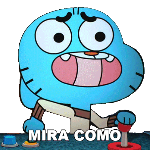 Gumball Watterson from The Amazing World of Gumball intensely presses buttons, exclaiming 'Mira Como Estoy Sudando' (Look How I Am Sweating).