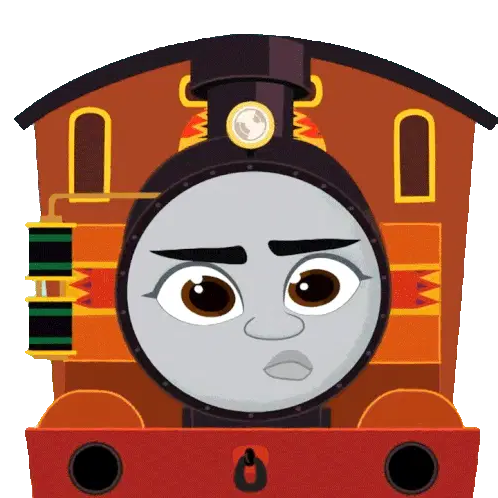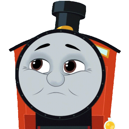 James, the red train from Thomas & Friends, looks up pensive, then closes his eyes with a contented smile, admiring the view.