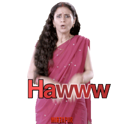 A woman from Mirzapur expresses shock with a 'Hawww' reaction, hands to her face in surprise and disbelief.