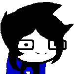 a cartoon character with black hair and glasses is wearing a blue shirt .