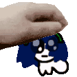 Misa Raijin, a blue and white pixel art character from Persona 4 Parallel Universe, being placed by a hand.