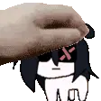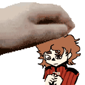 Misaki Uta, holding a delicate flower, receives a gentle and comforting head pat from a large hand in this pixel art animation.