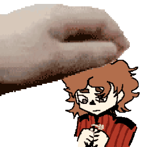 a pixel art of a person holding a flower with a hand behind them