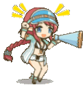 Misato from Princess Connect Re:Dive, a cheerful anime girl, energetically holds a yellow megaphone, ready to cheer.